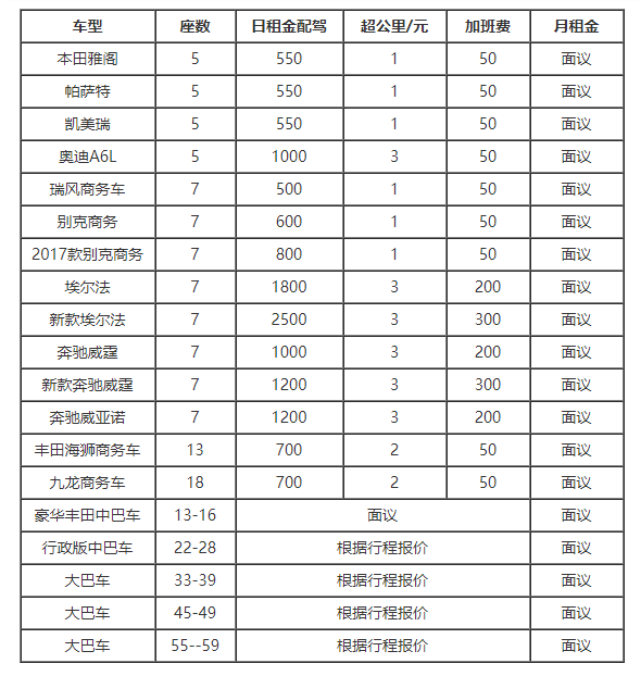 日 租:1500元(市區(qū)配駕)